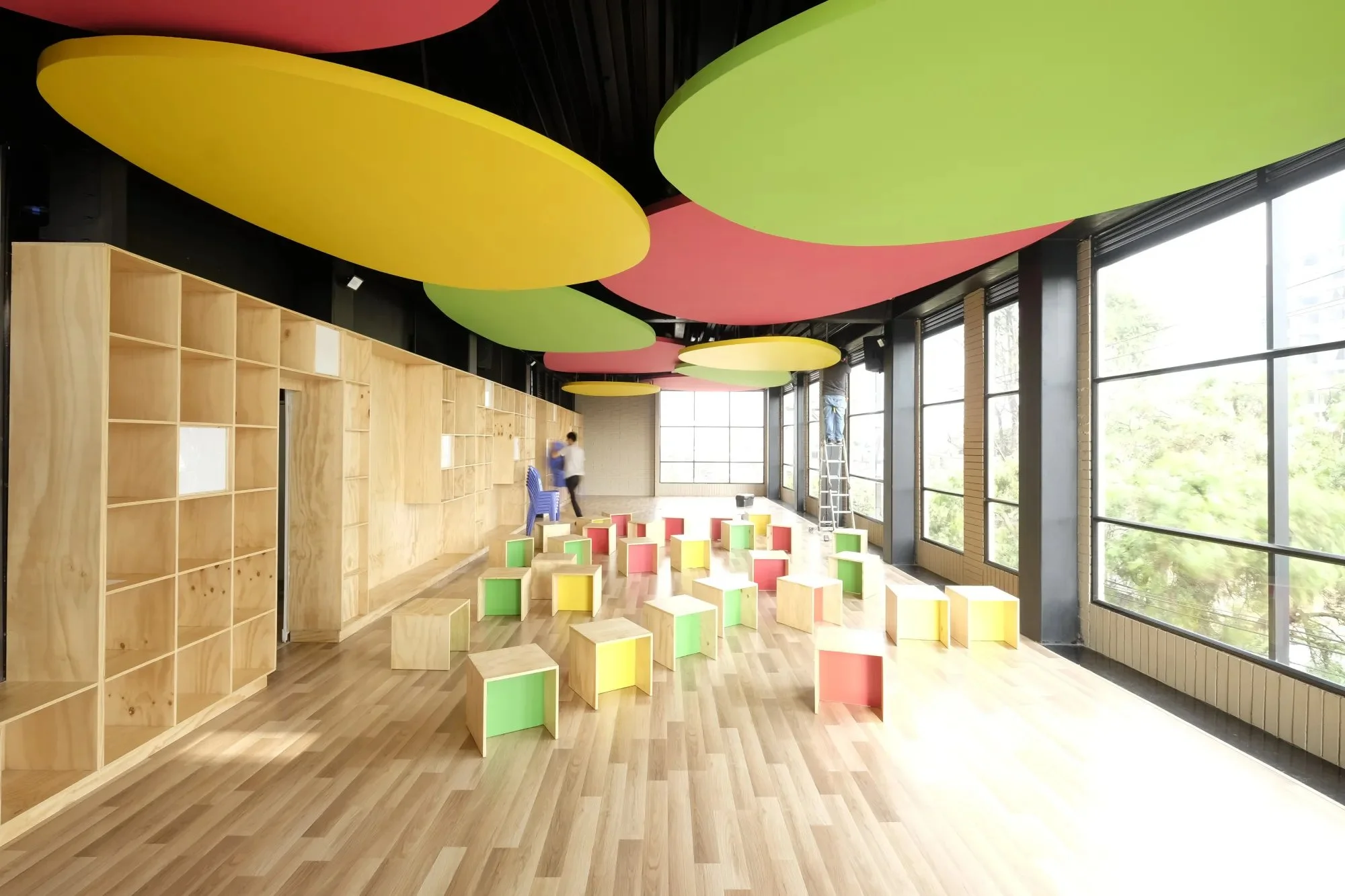 Small group work and teacher-led discussions can happen simultaneously, or the space can function as one when needed. The key is acoustics. Proper sound control prevents activities from disrupting each other, helping everyone stay focused. The design achieves this without breaking the budget.The solution balances performance with budget constraints